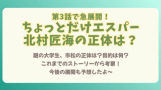 テレビ朝日系ドラマ『ちょっとだけエスパー』で謎多き大学生・市松を演じる北村匠海さんが話題を呼んでいます。第3話まで放送済みですが、彼の正体や目的はまだ明かされていません。SNSや各種サイトでもいろいろな考察が飛び交い、視聴者の注目を一心に集...