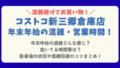 年末年始2026の営業スケジュールは、全国のコストコ店舗と共通のパターンで、12月31日の短縮営業と1月1日の休業がポイント。