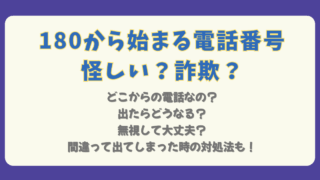 話題 180から始まる電話番号は怪しい/詐欺?無視で大丈夫?取ってしまった時の対処法も 最近、「180から始まる電話番号」からの不審な着信報告が相次いでいます。知らない番号からの電話に出てしまい、不安な思いをしたことがある方も多いのではないでしょうか。実際に「総務省を騙る自動音声」「警視庁を名乗る詐欺電話」「中国語アナウンス」... 2025.09.09 話題