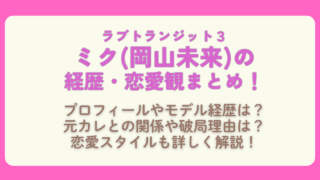 エンタメ 【ラブトランジット3】ミク(岡山未来)のモデル経歴・年齢は?元カレ・イッセイとの関係や恋愛観を徹底紹介 2025年10月16日からAmazon Prime Videoで配信開始された恋愛リアリティ番組『ラブトランジット3』。その中でも注目を集めているのが、福岡出身のモデルで明るいムードメーカー、ミク(岡山未来)さんです。28歳という大人の魅力... 2025.10.20 エンタメ