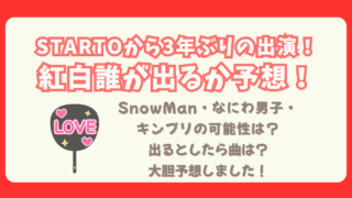 音楽 紅白2025スタート社の出演者を予想!SnowMan/なにわ男子/キンプリの可能性は?発表いつ? 2025年の「NHK紅白歌合戦」に、STARTO ENTERTAINMENT(スタート社)所属アーティストが3年ぶりに出場調整中というニュースが10月19日に報じられました。旧ジャニーズ事務所の再出発以降、「紅白復帰」は長くファンの間で待ち... 2025.10.20 音楽