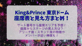 キンプリ King&Prince ライブ ドームツアー 東京公演 東京ドーム 座席 いつわかる 座席表 見え方 エリア アリーナ スタンド 神席 近い席 特徴 ステージ 席の決まり方 ゲート番号 双眼鏡 おすすめ  ライブ最新情報